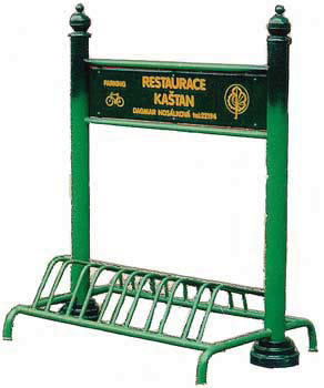 Součástí jednotného městského mobiliáře jsou i stojany na kola. Jedná se o trubkovou ocelovou konstrukci žárově zinkovanou, lze zkombinovat i s barevným provedením dle RAL. Do horní části lze umístnit reklamní ceduli.