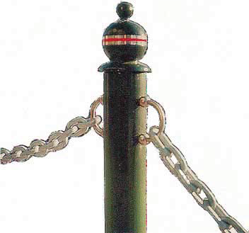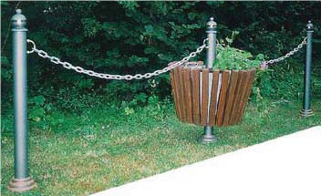Kovový sloupek k zabetonování, žárově zinkovaný i v dutinách a povrchově upravený práškovou barvou dle RAL, sloupek je ukončen litinovou hlavicí. V horní části sloupku jsou osazeny mosazné úchyty pro řetězy. Spodní část sloupku je ukončena ozdobnou přírubou.